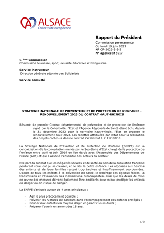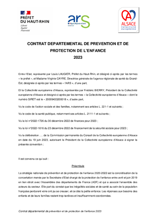 STRATEGIE NATIONALE DE PREVENTION ET DE PROTECTION DE L'ENFANCE - RENOUVELLEMENT 2023 DU CONTRAT HAUT-RHINOIS