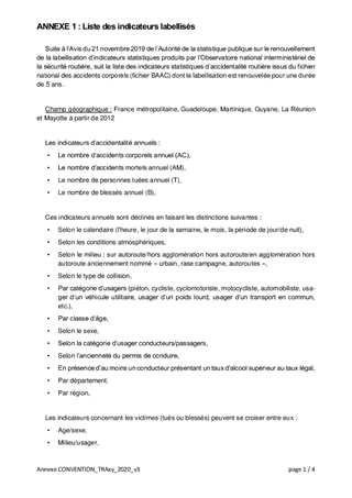 CONVENTION PERMETTANT L'EXPLOITATION ET LA CORRECTION DES DONNÉES DU FICHIER NATIONAL DES ACCIDENTS CORPORELS
