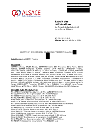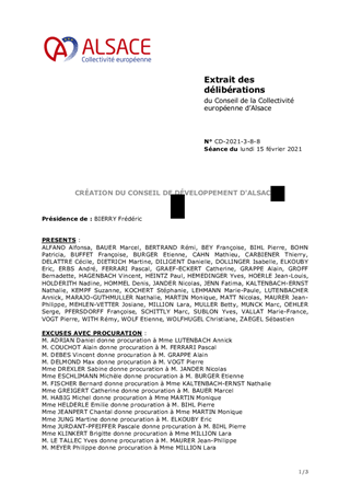 CRÉATION DU CONSEIL DE DÉVELOPPEMENT D'ALSACE