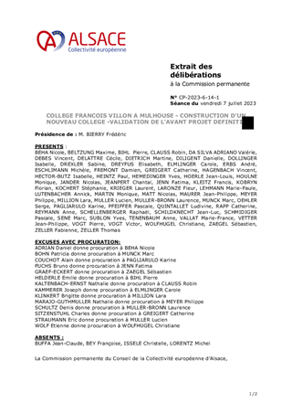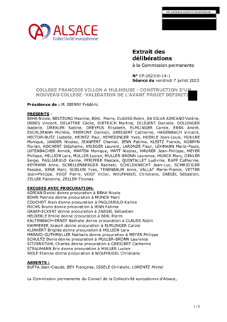 COLLEGE FRANCOIS VILLON A MULHOUSE - CONSTRUCTION D'UN NOUVEAU COLLEGE -VALIDATION DE L'AVANT PROJET DEFINITIF