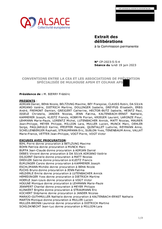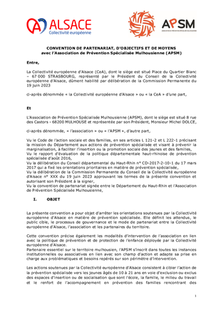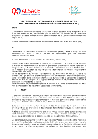 CONVENTIONS ENTRE LA CEA ET LES ASSOCIATIONS DE PRÉVENTION SPÉCIALISÉE DE MULHOUSE APSM ET COLMAR APSC