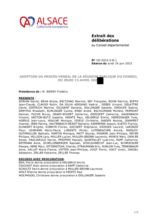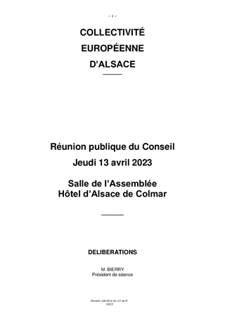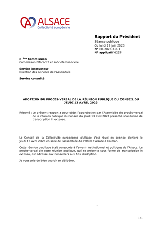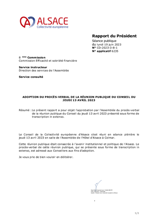 Le présent rapport a pour objet l'approbation par l'Assemblée du procès-verbal de la réunion publique du Conseil du jeudi 13 avril 2023 présenté sous forme de transcription in extenso.