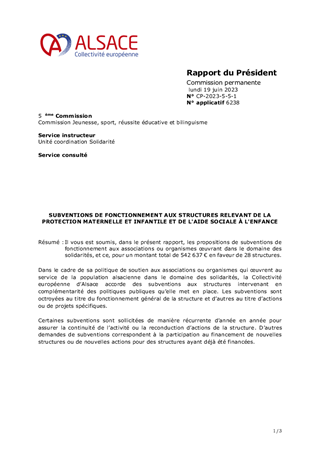 SUBVENTIONS DE FONCTIONNEMENT AUX STRUCTURES RELEVANT DE LA PROTECTION MATERNELLE ET INFANTILE ET DE L'AIDE SOCIALE À L'ENFANCE