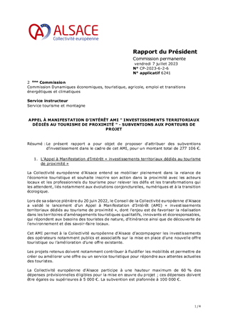 APPEL À MANIFESTATION D'INTÉRÊT AMI " INVESTISSEMENTS TERRITORIAUX DÉDIÉS AU TOURISME DE PROXIMITÉ " - SUBVENTIONS AUX PORTEURS DE PROJET