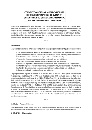 RENOUVELLEMENT DE LA CONVENTION CONSTITUTIVE DU CONSEIL DÉPARTEMENTAL DE L'ACCÈS AU DROIT DU HAUT-RHIN