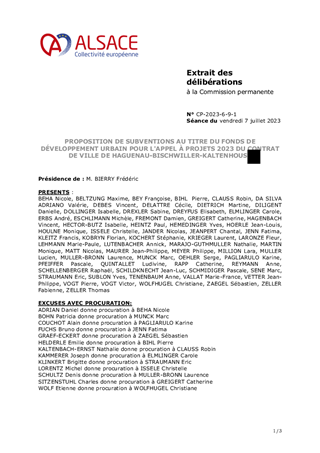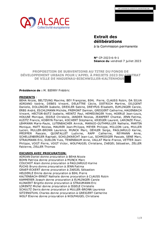 PROPOSITION DE SUBVENTIONS AU TITRE DU FONDS DE DÉVELOPPEMENT URBAIN POUR L'APPEL À PROJETS 2023 DU CONTRAT DE VILLE DE HAGUENAU-BISCHWILLER-KALTENHOUSE