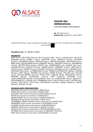 SUBVENTIONS A DES ASSOCIATIONS AGISSANT EN FAVEUR DES JEUNES ALSACIENS
