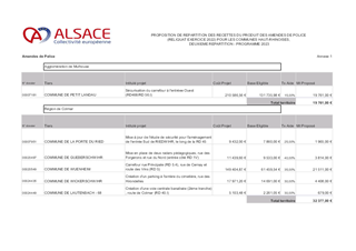 PROPOSITION DE RÉPARTITION DES RECETTES DU PRODUIT DES AMENDES DE POLICE RELIQUAT PROGRAMME 2022 POUR LES COMMUNES HAUT-RHINOISES, DEUXIEME REPARTITION - PROGRAMME 2023