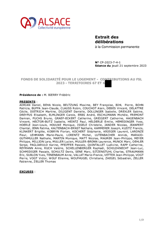 FONDS DE SOLIDARITÉ POUR LE LOGEMENT -CONTRIBUTIONS AU FSL 2023 - TERRITOIRES 67 ET 68