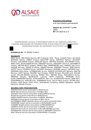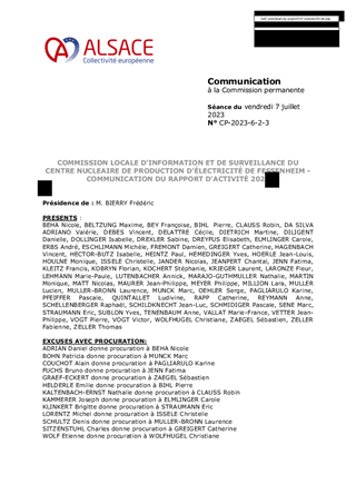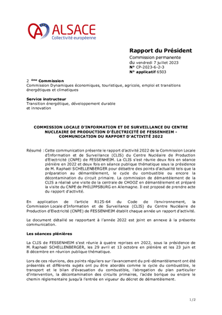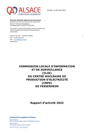 COMMISSION LOCALE D'INFORMATION ET DE SURVEILLANCE DU CENTRE NUCLEAIRE DE PRODUCTION D'ÉLECTRICITÉ DE FESSENHEIM - COMMUNICATION DU RAPPORT D'ACTIVITÉ 2022