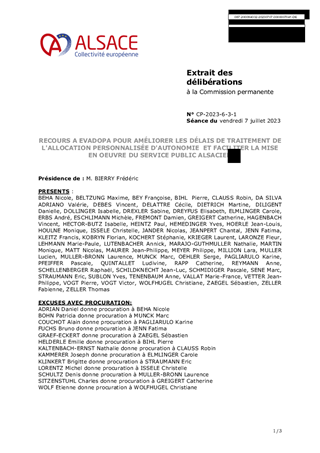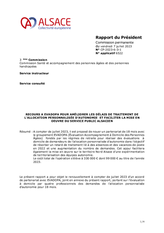 RECOURS A EVADOPA POUR AMÉLIORER LES DÉLAIS DE TRAITEMENT DE L'ALLOCATION PERSONNALISÉE D'AUTONOMIEET FACILITER LA MISE EN OEUVRE DU SERVICE PUBLIC ALSACIEN