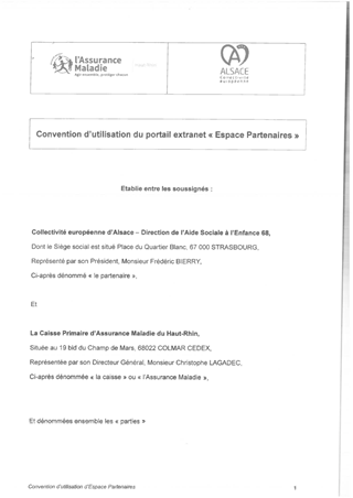 CONVENTION D'UTILISATION DU PORTAIL EXTRANET " ESPACE PARTENAIRES " - CAISSE PRIMAIRE D'ASSURANCE MALADIE DU HAUT-RHINDIRECTION DE L'AIDE SOCIALE À L'ENFANCE
