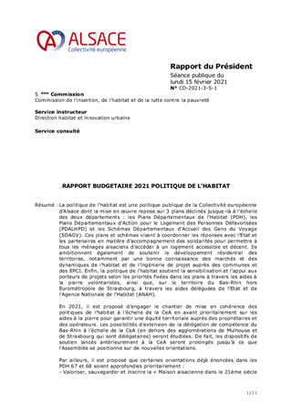RAPPORT BUDGETAIRE 2021 POLITIQUE DE L'HABITAT