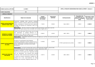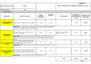 Les différentes politiques dédiées au domaine du sport feront l'objet de chantiers de convergence au cours de l'année 2021. Dans l'immédiat, le présent rapport a pour objet d’approuver les aides retenues dans le cadre des appels à projets suivants : - « Lutte contre les discriminations dans le sport » : 15 dossiers pour un montant de 11 000 € ; - « Sport et Handicap » - volet formation (fonctionnement) : 4 dossiers pour un montant de 6 600 € ; - « Sport et Handicap » - volet achat de matériel spécialisé (investissement) : 9 dossiers pour un montant de 21 500 €. Le montant global des subventions proposées dans ce rapport s’élève à 17 600 € pour le fonctionnement et 21 500 € pour l’investissement. Ces dossiers ont recueilli l’avis favorable de la Commission « Sport et Vie associative » du Département du Haut-Rhin réunie le 27 novembre 2020.