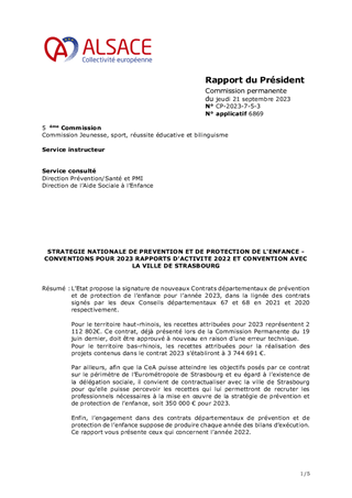 STRATEGIE NATIONALE DE PREVENTION ET DE PROTECTION DE L'ENFANCE - CONVENTIONS POUR 2023 RAPPORTS D'ACTIVITE 2022 ET CONVENTION AVEC LA VILLE DE STRASBOURG