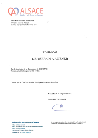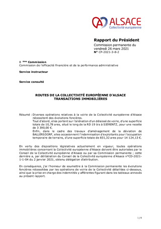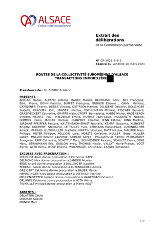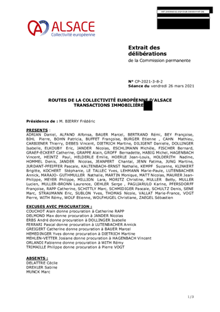 ROUTES DE LA COLLECTIVITÉ EUROPÉENNE D'ALSACE TRANSACTIONS IMMOBILIÈRES