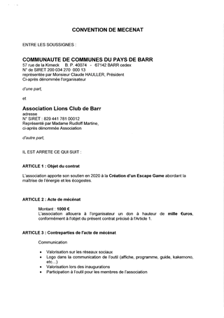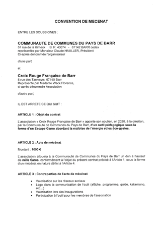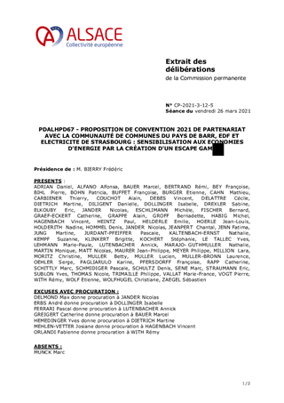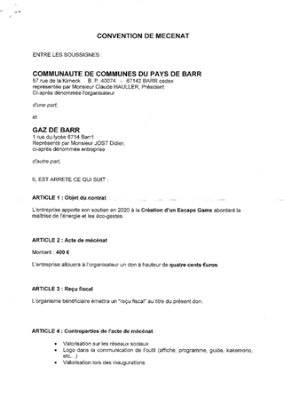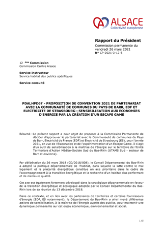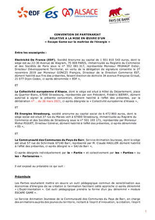 PDALHPD67 - PROPOSITION DE CONVENTION 2021 DE PARTENARIAT AVEC LA COMMUNAUTÉ DE COMMUNES DU PAYS DE BARR, EDF ET ELECTRICITE DE STRASBOURG : SENSIBILISATION AUX ECONOMIES D'ENERGIE PAR LA CRÉATION D'UN ESCAPE GAME
