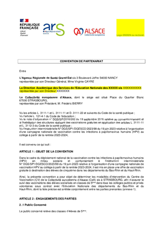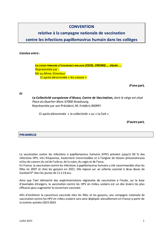 VACCINATION CONTRE LES INFECTIONS À PAPILLOMAVIRUS HUMAINS 2023-2024 DANS LES COLLEGES CONVENTIONS ARS CPAM