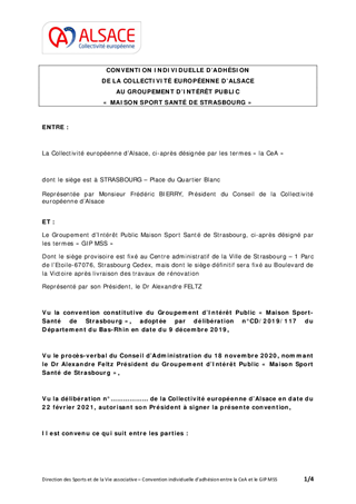 POLITIQUE EN FAVEUR DU SPORT CONVENTION INDIVIDUELLE D'ADHÉSION AU GROUPEMENT D'INTÉRÊT PUBLIC MAISON SPORT-SANTÉ DE STRASBOURG