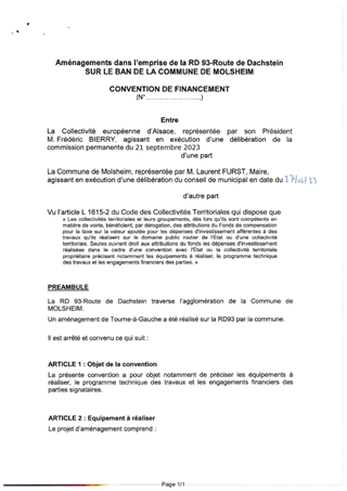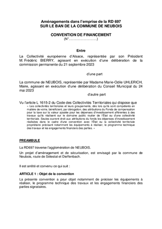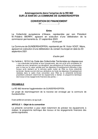 Le présent rapport a pour objet d’approuver les conventions de financement à conclure avec les Communes de Boersch, Gundershoffen, Minversheim, Molsheim, Neubois, Schwindratzheim et Wissembourg dans le cadre de travaux qu'elles réalisent sur le domaine public routier de la Collectivité européenne d’Alsace. Ces travaux peuvent donner lieu à récupération par les communes du Fonds de Compensation pour la Taxe sur la Valeur Ajoutée (FCTVA). A cet effet, il est proposé d'approuver les conventions qui permettent aux communes de faire émarger ces opérations au FCTVA pour les investissements qu’elles sont amenées à réaliser sur le domaine public routier de la Collectivité européenne d’Alsace.