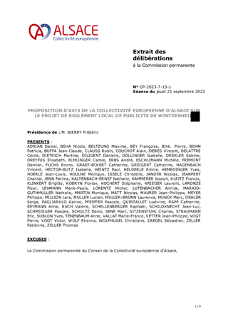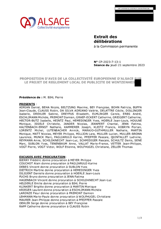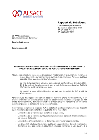 PROPOSITION D'AVIS DE LA COLLECTIVITÉ EUROPEENNE D'ALSACE SUR LE PROJET DE REGLEMENT LOCAL DE PUBLICITE DE WINTZENHEIM