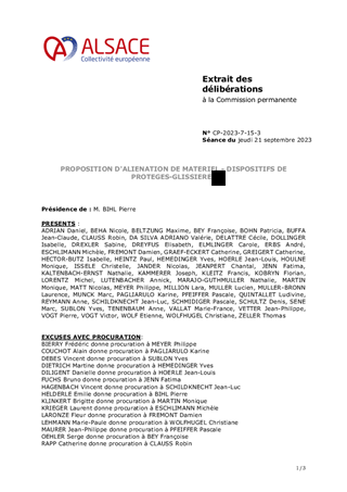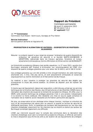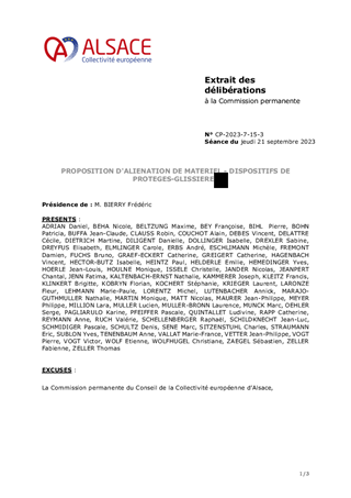 PROPOSITION D'ALIENATION DE MATERIEL - DISPOSITIFS DE PROTEGES-GLISSIERES