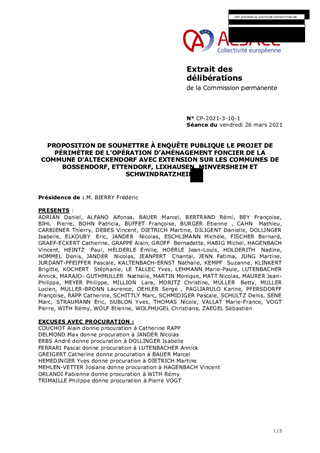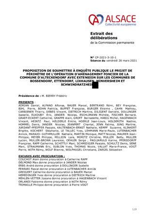 PROPOSITION DE SOUMETTRE À ENQUÊTE PUBLIQUE LE PROJET DE PÉRIMÈTRE DE L'OPÉRATION D'AMÉNAGEMENT FONCIER DE LA COMMUNE D'ALTECKENDORF AVEC EXTENSION SUR LES COMMUNES DE BOSSENDORF, ETTENDORF, LIXHAUSEN, MINVERSHEIM ET SCHWINDRATZHEIM