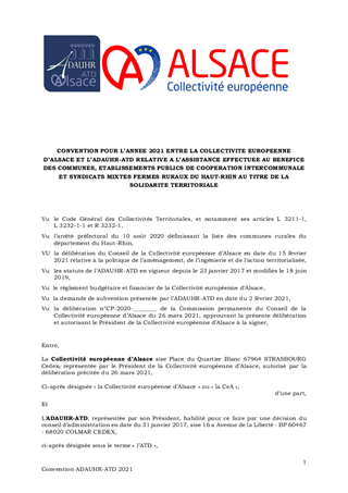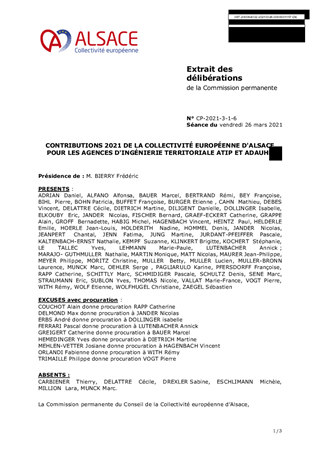 CONTRIBUTIONS 2021 DE LA COLLECTIVITÉ EUROPÉENNE D'ALSACE POUR LES AGENCES D'INGÉNIERIE TERRITORIALE ATIP ET ADAUHR