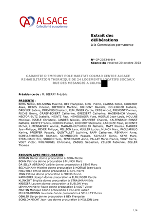 GARANTIE D'EMPRUNT POLE HABITAT COLMAR CENTRE ALSACE REHABILITATION THERMIQUE DE 24 LOGEMENTS LOCATIFS SOCIAUX RUE DES MESANGES A COLMAR