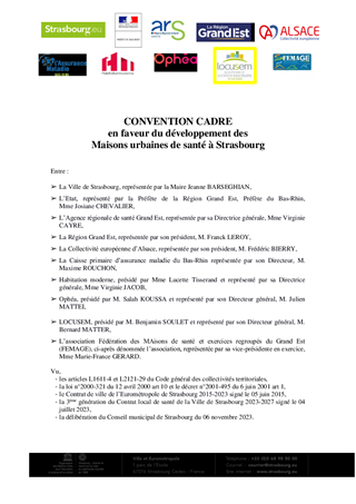 CONVENTION CADRE EN FAVEUR DU DÉVELOPPEMENT DES MAISONS URBAINES DE SANTE DE STRASBOURG