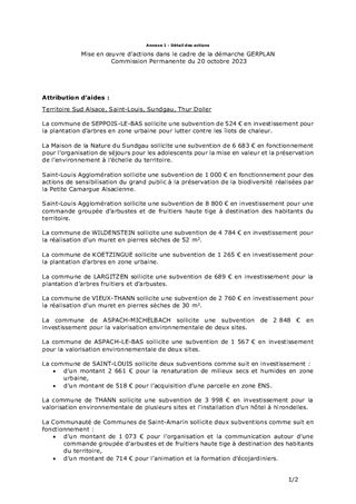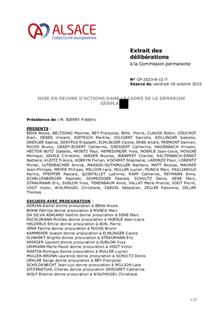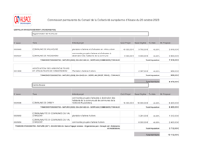 Dans le cadre de la programmation GERPLAN 2023, la Collectivité européenne d’Alsace est sollicitée pour soutenir la mise en œuvre de trente et un projets. Il vous est proposé de soutenir ces projets pour un montant total de 75 374 € (dont 62 788 € en investissement et 12 586 € en fonctionnement).