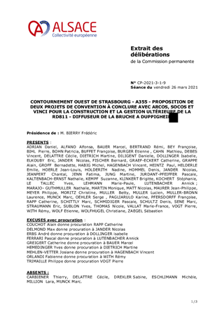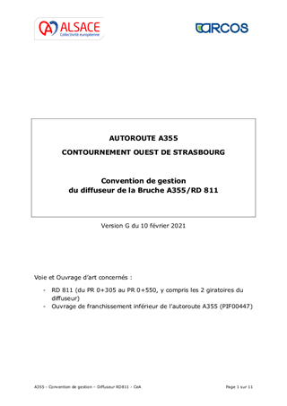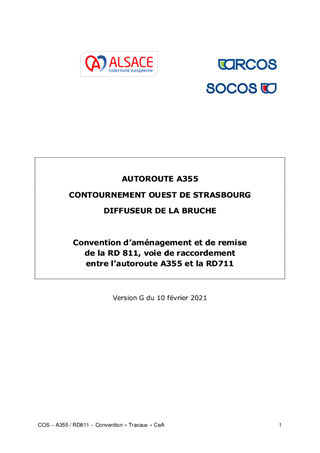 CONTOURNEMENT OUEST DE STRASBOURG - A355 - PROPOSITION DE DEUX PROJETS DE CONVENTION À CONCLURE AVEC ARCOS, SOCOS ET VINCI POUR LA CONSTRUCTION ET LA GESTION ULTÉRIEURE DE LA RD811 - DIFFUSEUR DE LA BRUCHE A DUPPIGHEIM