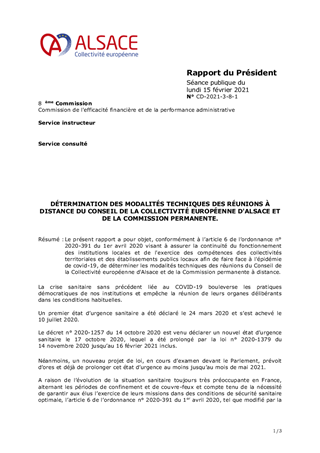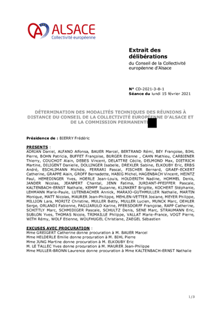 DÉTERMINATION DES MODALITÉS TECHNIQUES DES RÉUNIONS À DISTANCE DU CONSEIL DE LA COLLECTIVITÉ EUROPÉENNE D'ALSACE ET DE LA COMMISSION PERMANENTE.