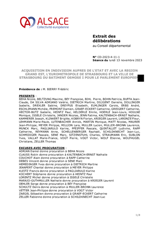 ACQUISITION EN INDIVISION AUPRES DE L'ETAT ET AVEC LA REGION GRAND EST, L'EUROMETROPOLE DE STRASBOURG ET LA VILLE DE STRASBOURG DU BATIMENT OSMOSE I POUR LE PARLEMENT EUROPEEN.