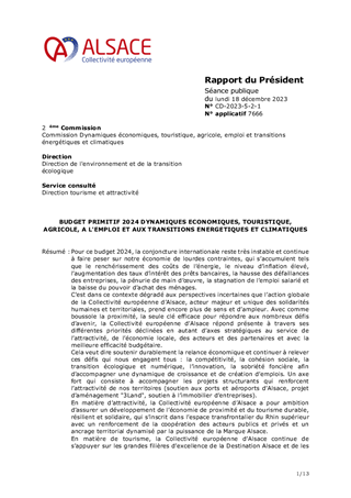 BUDGET PRIMITIF 2024 DYNAMIQUES ECONOMIQUES, TOURISTIQUE, AGRICOLE, A L'EMPLOI ET AUX TRANSITIONS ENERGETIQUES ET CLIMATIQUES