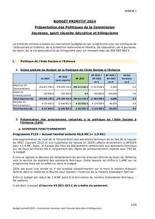 BUDGET PRIMITIF 2024 - UNE AMBITION POUR LA JEUNESSE, DECLINEE DANS LES POLITIQUES DE LA PROTECTION DE L'ENFANCE, DE LA PROTECTION MATERNELLE ET INFANTILE, DE L'EDUCATION, DE LA JEUNESSE, DU SPORT ET DU BILINGUISME