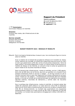 BUDGET PRIMITIF 2024 - RESEAUX ET MOBILITE