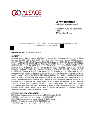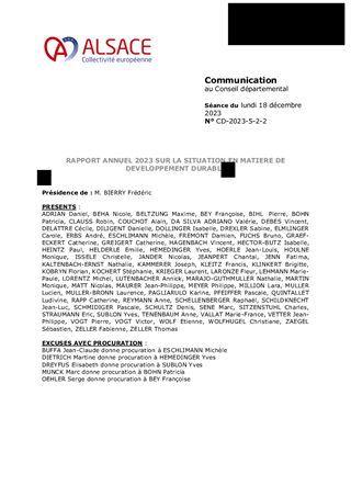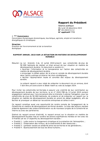RAPPORT ANNUEL 2023 SUR LA SITUATION EN MATIERE DE DEVELOPPEMENT DURABLE