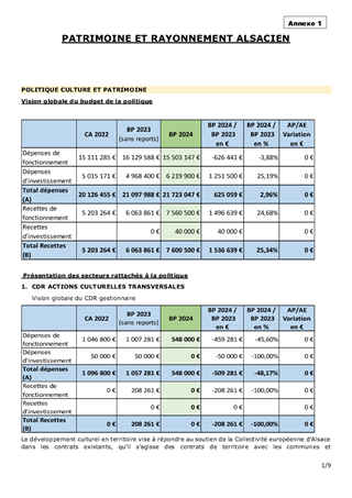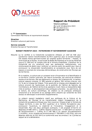 BUDGET PRIMITIF 2024 - PATRIMOINE ET RAYONNEMENT ALSACIEN