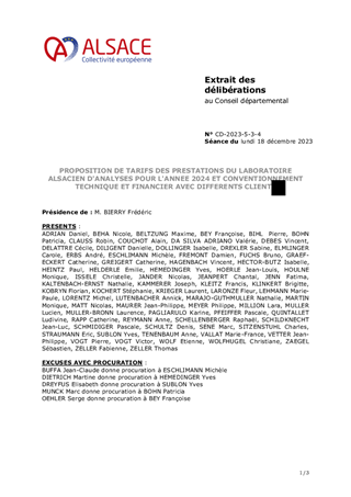 PROPOSITION DE TARIFS DES PRESTATIONS DU LABORATOIRE ALSACIEN D'ANALYSES POUR L'ANNEE 2024 ET CONVENTIONNEMENT TECHNIQUE ET FINANCIER AVEC DIFFERENTS CLIENTS