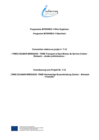PROGRAMME INTERREG V RHIN SUPÉRIEUR - CONVENTION RELATIVE AU PROJET N 7.19 " THNS COLMAR-BREISACHTHNS TRANSPORT À HAUT NIVEAU DE SERVICE COLMAR - BREISACH - ÉTUDES PRÉLIMINAIRES "