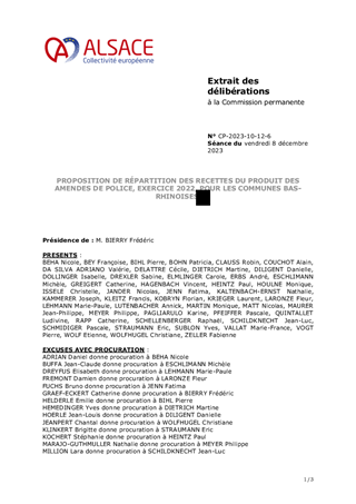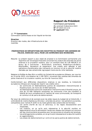 PROPOSITION DE RÉPARTITION DES RECETTES DU PRODUIT DES AMENDES DE POLICE, EXERCICE 2022, POUR LES COMMUNES BAS-RHINOISES.