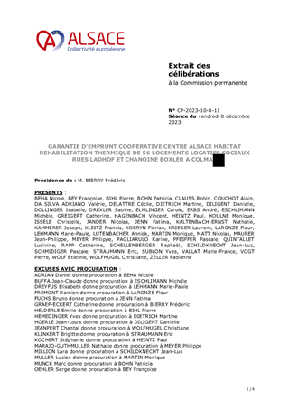 GARANTIE D'EMPRUNT COOPERATIVE CENTRE ALSACE HABITAT REHABILITATION THERMIQUE DE 56 LOGEMENTS LOCATIFS SOCIAUX RUES LADHOF ET CHANOINE BOXLER A COLMAR
