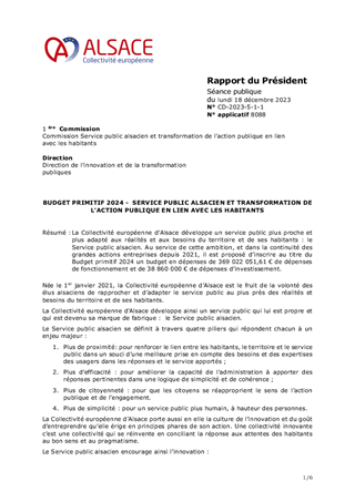BUDGET PRIMITIF 2024 -SERVICE PUBLIC ALSACIEN ET TRANSFORMATION DE L'ACTION PUBLIQUE EN LIEN AVEC LES HABITANTS