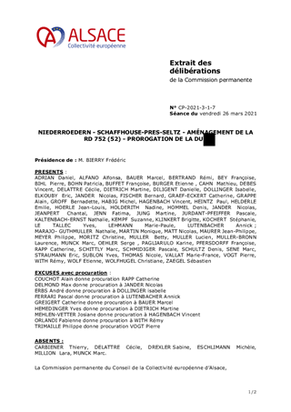 Le présent rapport a pour objet d'autoriser le président de la Collectivité européenne d'Alsace à demander au Préfet la prorogation de la déclaration d'utilité publique de l'aménagement de la RD752 (52) entre NIEDERROEDERN et SCHAFFHOUSE-PRES-SELTZ.
