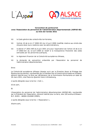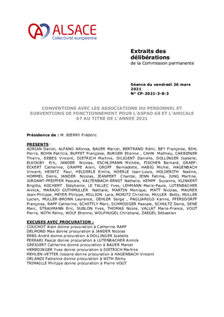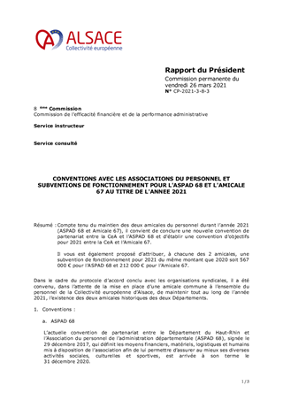 CONVENTIONS AVEC LES ASSOCIATIONS DU PERSONNEL ET SUBVENTIONS DE FONCTIONNEMENT POUR L'ASPAD 68 ET L'AMICALE 67 AU TITRE DE L'ANNEE 2021
