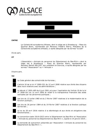 Compte tenu du maintien des deux amicales du personnel durant l’année 2021 (ASPAD 68 et Amicale 67), il convient de conclure une nouvelle convention de partenariat entre la CeA et l’ASPAD 68 et d’établir une convention d’objectifs pour 2021 entre la CeA et l’Amicale 67. Il vous est également proposé d’attribuer, à chacune des 2 amicales, une subvention de fonctionnement pour 2021 du même montant que 2020 soit 567 000 € pour l’ASPAD 68 et 212 000 € pour l’Amicale 67.