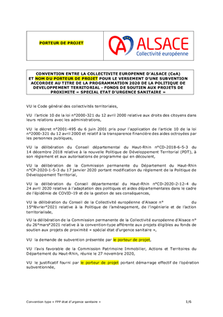 POLITIQUE DE DEVELOPPEMENT TERRITORIAL FONDS DE SOUTIEN AUX PROJETS DE PROXIMITE SPECIAL ETAT D'URGENCE SANITAIRE CONVENTION TYPE ET 1ERE PROGRAMMATION DE LA CAMPAGNE 2020