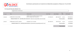 Le présent rapport a pour objet de proposer à la Commission permanente d'approuver l'attribution de subventions d'investissement au titre du Fonds Communal Alsace (FCA), pour un montant total de 1 855 076 €.
