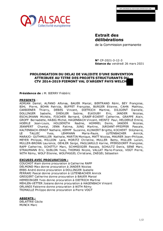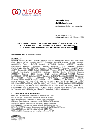 PROLONGATION DU DELAI DE VALIDITE D'UNE SUBVENTION ATTRIBUEE AU TITRE DES PROJETS STRUCTURANTS DU CTV 2014-2019 PIEMONT VAL D'ARGENT PAYS WELCHE